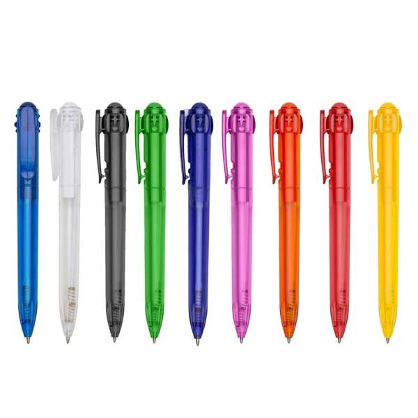Caneta personalizada transparente. 8 opções de cores de canetas em corpo transparentes para sua escolha. Solicite um layout com sua marca personalizada. cod 1984 t ncm : 96081000
