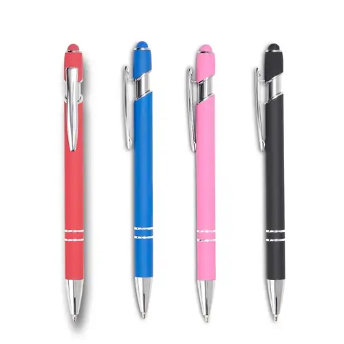 Caneta tinta preta para empresa com ponteira touch para uso em tela de smartphones. A Caneta Touch possui um design moderno com acabamentos metálicos. São várias opções de cores para vocês escolher. Combine com a cor de seu logotipo e personalize em laser com a Brindesmil.