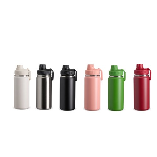 Garrafa inox personalizada 550ml foi feita com pintura eletroestática para dar mais durabilidade. Possui ainda tampa rosqueável e uma alça para transporte no mesmo tom de cor da garrafa.