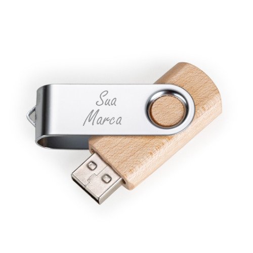 Compre este lindo pen drive em madeira a partir de 50 unidades personalizados com a arte da sua empresa.